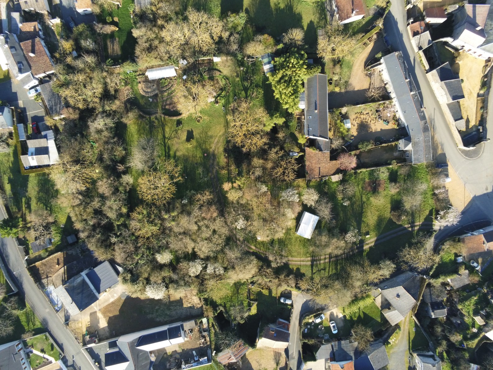 Commanditaire : Troglodytes et sarcophages Nature de la prestation : vues aériennes de l’enclos de la Seigneurie, sous lequel s’étendent des carrières de sarcophages du haut Moyen Âge Date : mars 2021